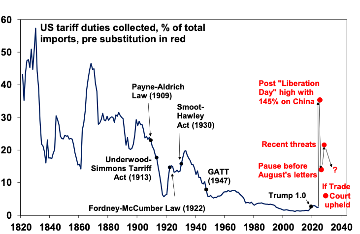 – Nine key charts worth watching are: business conditions PMIs; US tariffs; inflation; inflation expectations; profit growth; share market valuations; the rotation trade from tech to non-tech shares; the $US; and geopolitical risk. At present they are sending mixed signals.