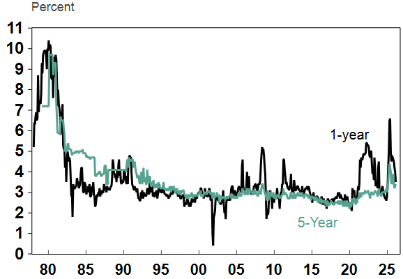 The 2022 inflation shock and last year’s US tariff surge posed a risk that inflation expectations will move higher making it harder to get inflation down. Fortunately, inflation expectations remain reasonably low. But they are high compared to the pre-pandemic period, including in Australia. If the trend stays up it will mean higher interest rates than otherwise.