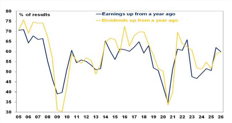 While the Australian December half reporting season is only about 25% done, so far there has been more beats and less misses than normal with around 60% of companies reporting earnings & dividends up on a year ago. This needs to continue to support further gains in the local share market.
